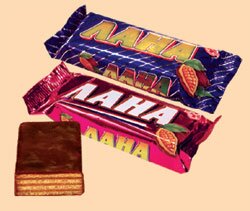 Глазированные конфеты увеличенной формы на вафельной основе с кремовой начинкой, которая содержит какао-порошок и фруктозу.