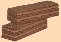 шоколад - миндаль: 5 слоев вафельного листа, 2 слоя нежной миндальной начинки и 2 слоя густой шоколадной начинки;