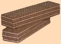 "Хрумба" шоколадно - ореховые: 6 слоев вафельного листа, 3 слоя густой шоколадной начинки, 2 слоя ореховой начинки цвета кофе с молоком;